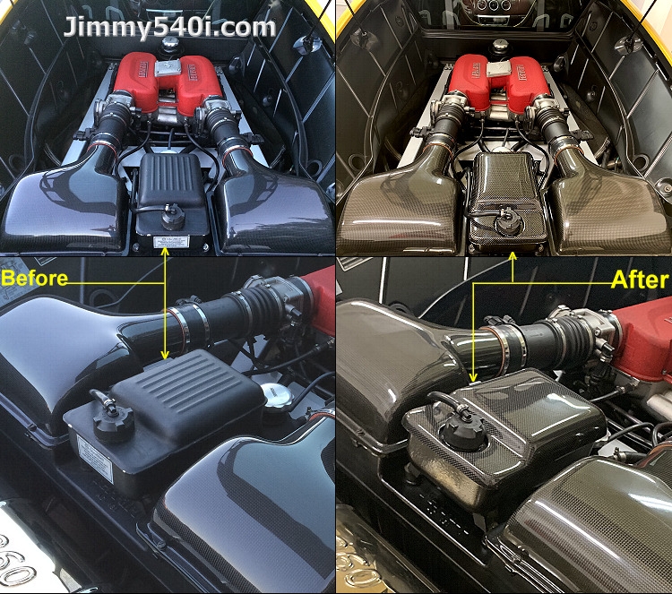 Here's a good mod for the Ferrari 360. Upgraded Carbon Fiber Coolant Tank Cover. Very clean IMHO.